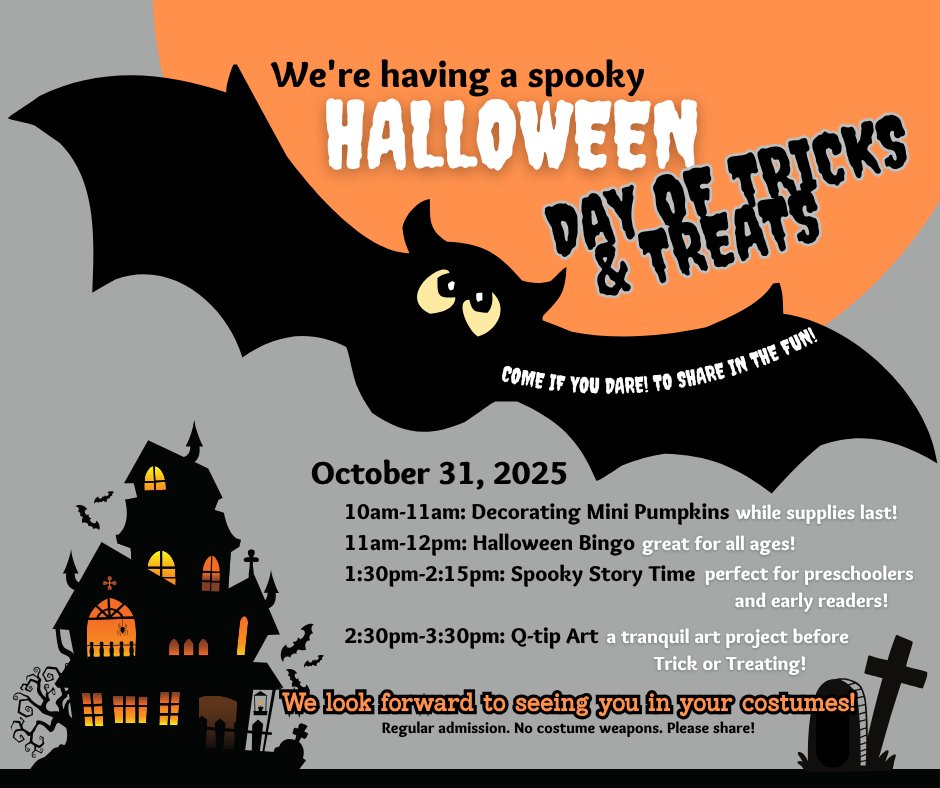 Únete a nosotros el domingo 27 de octubre de 12:00 a 16:00 para pasar un día divertido y espeluznante en el Museo de los Niños.